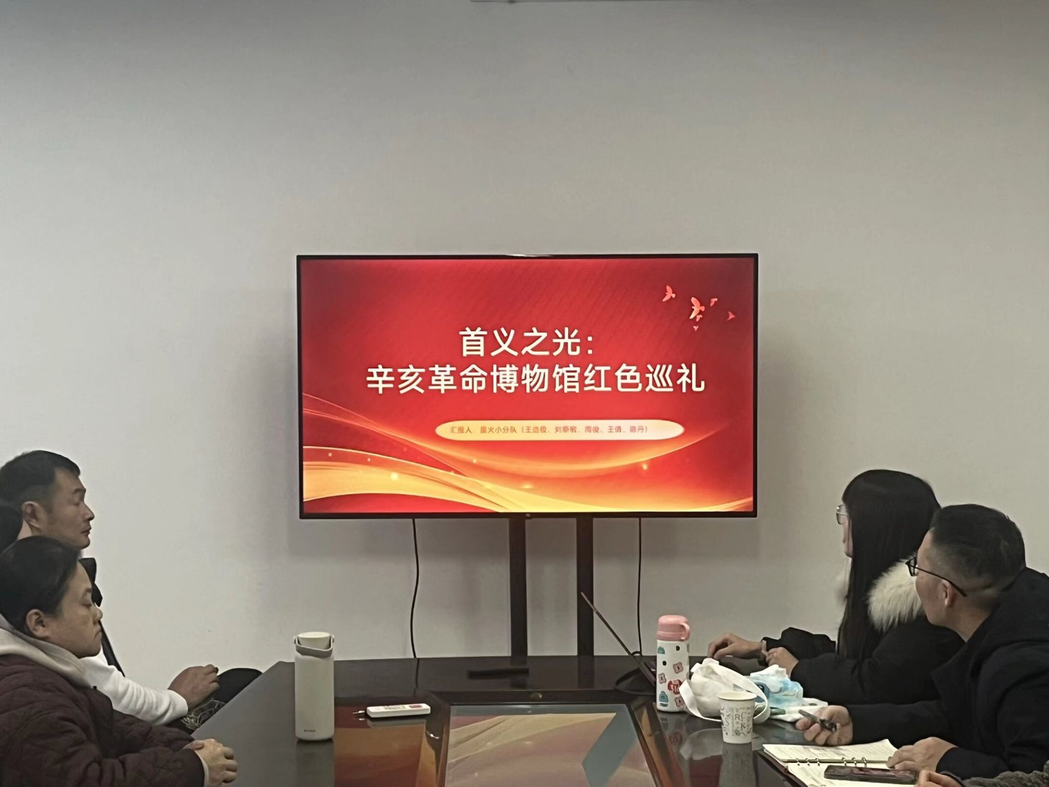 在支部汇报会上,党员代表陈丹结合精心制作的PPT《首义之光:辛亥革命博物馆红色巡礼》,系统介绍了博物馆的整体布局与陈列脉络。汇报内容围绕“晚清中国”“革命原起”“武昌首义”“创建共和”“辛亥百年”五大展区展开,通过一幅幅历史图片、一件件珍贵文物、一幕幕场景复原,生动再现了从晚清民族危机到武昌起义爆发,再到共和制度创建的艰难历程。汇报重点讲述了孙中山先生等革命先驱的奋斗足迹,以及武昌首义在中华民族复兴道路上的里程碑意义。