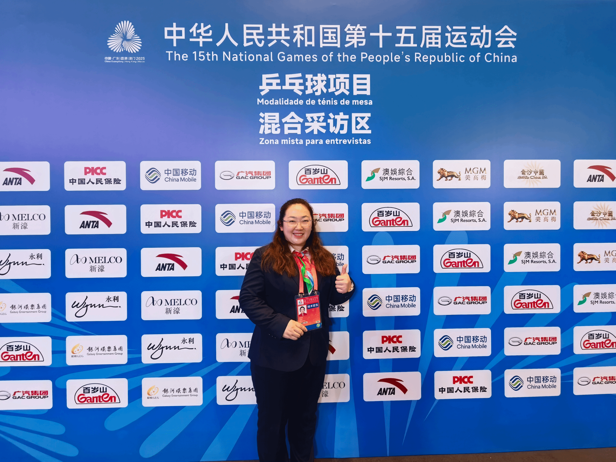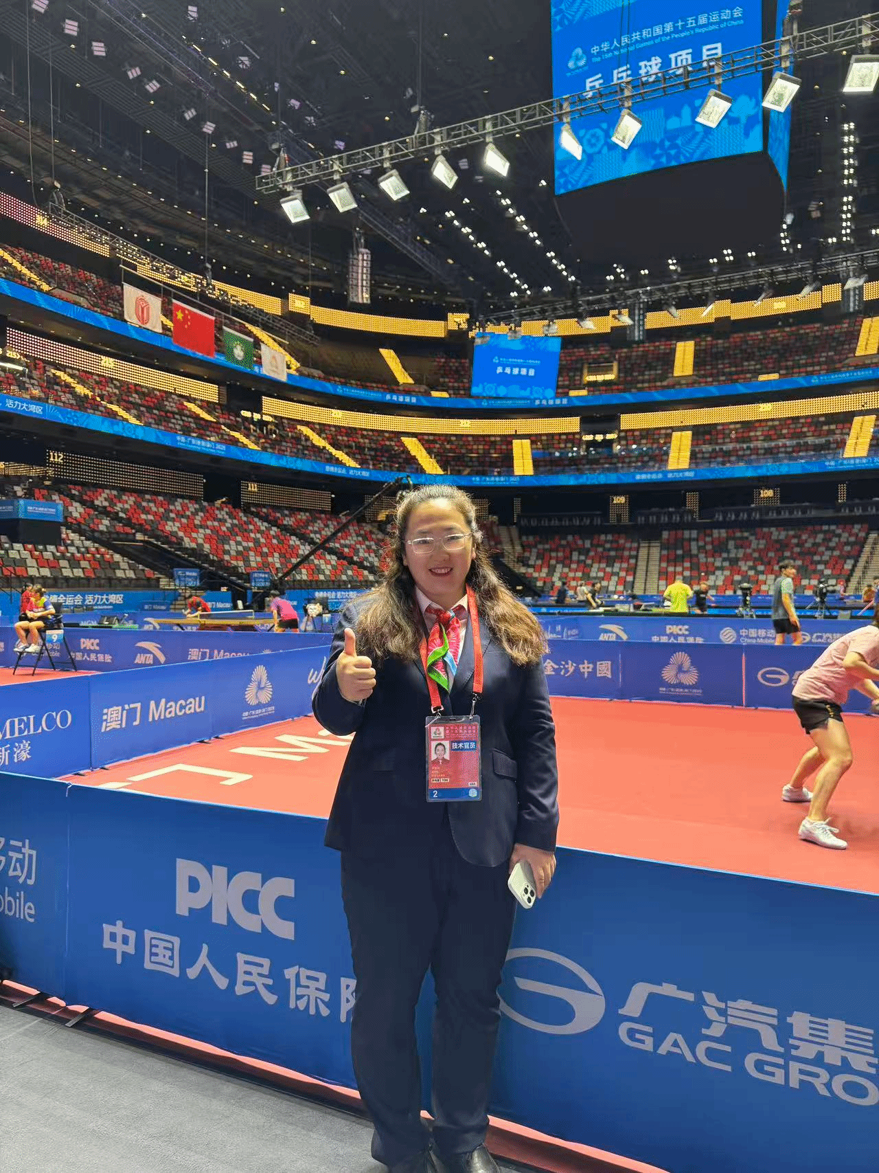 近日,中华人民共和国第十五届全国运动会乒乓球项目决赛在澳门圆满落幕。人文素质教育学院教师李怡双,应邀担任本届全运会乒乓球项目决赛阶段技术官员,并圆满完成执裁任务。其在赛场上表现出的出色执裁能力,充分展现了我院教师扎实的专业基础、高超的技能水平和严谨的职业素养,彰显出我院体育教师的卓越风采。
