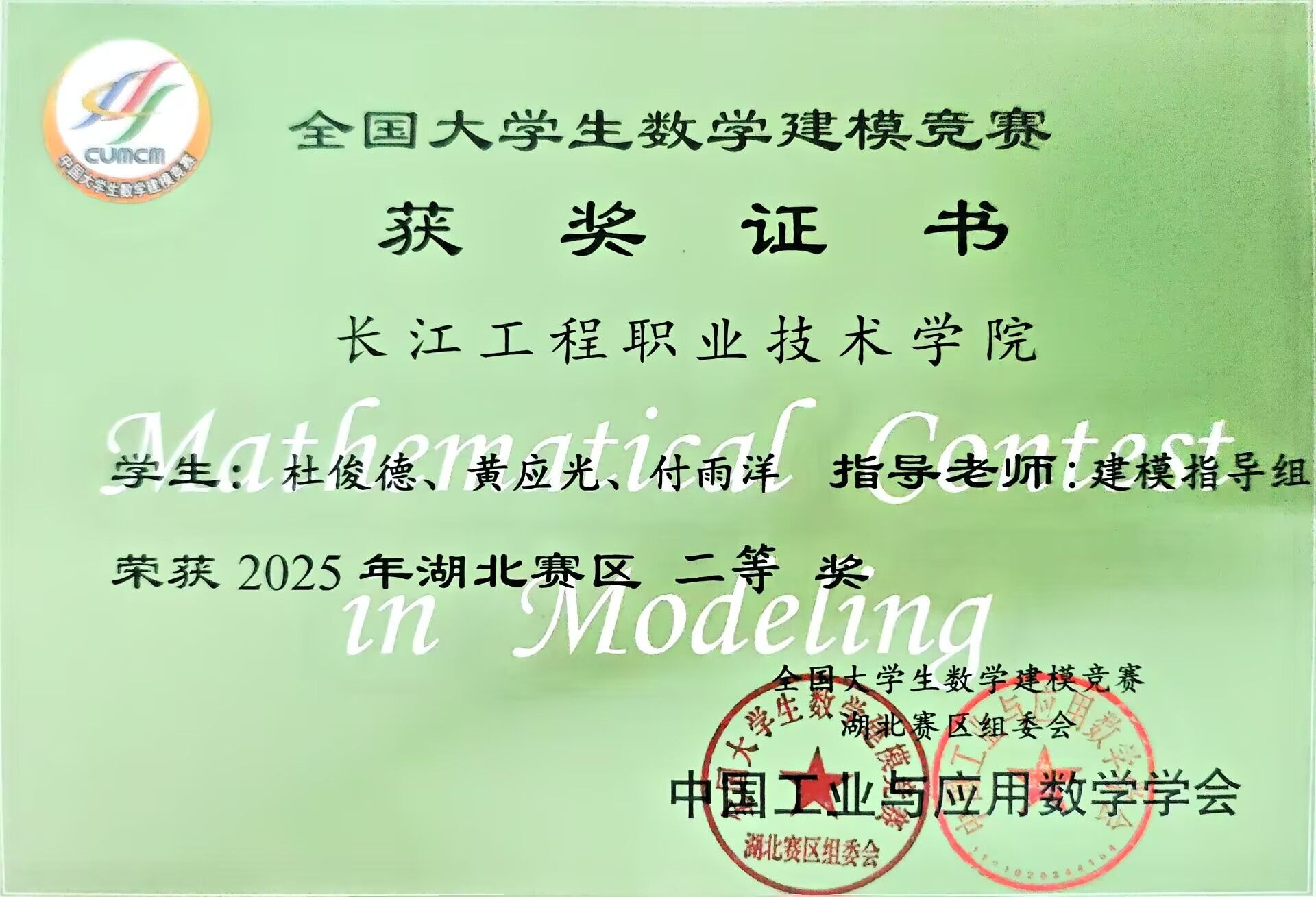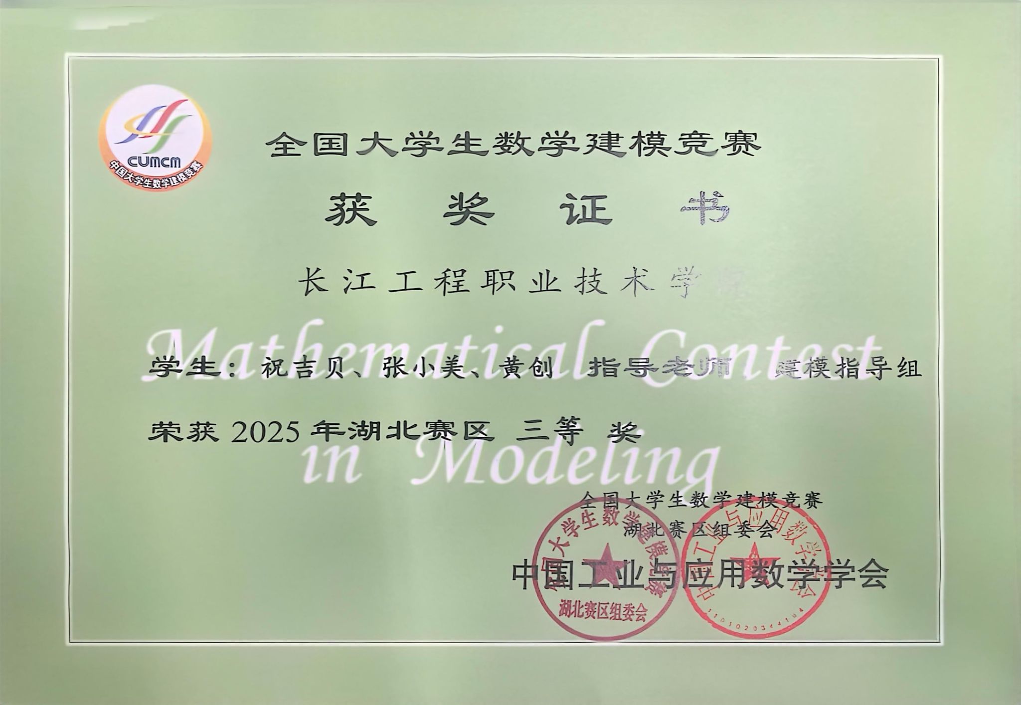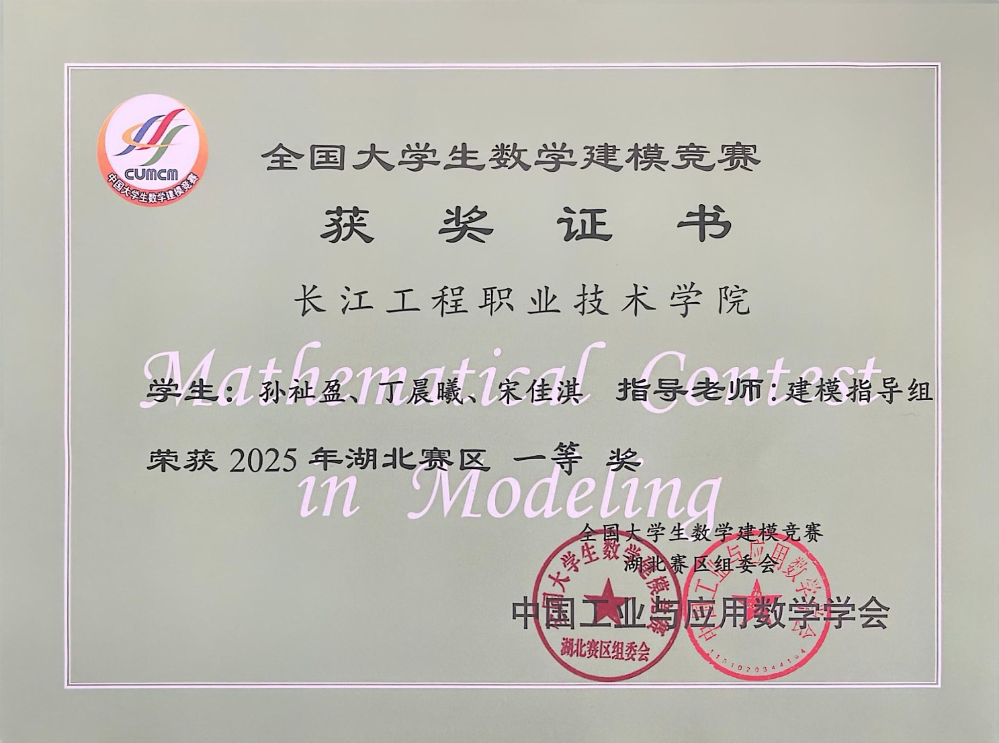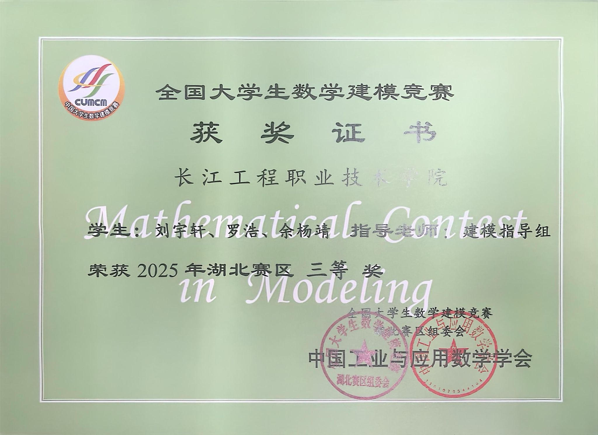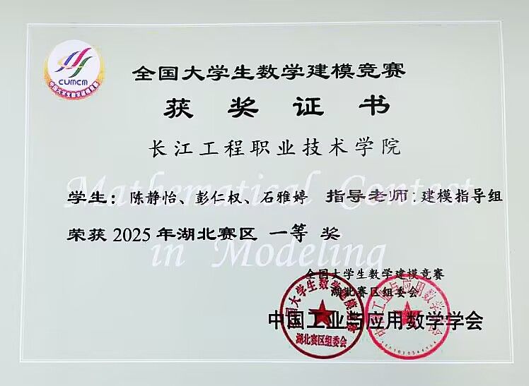 近日,由教育部高教司和中国工业与应用数学学会举办的全国大学生数学建模竞赛成绩揭晓。由我校公共课部数学建模指导组的指导的5支参赛队伍全部获奖,其中陈丹、刘有权老师指导的陈静怡、彭仁权、石雅婷团队,赵成鳌、易同贸老师指导的孙祉盈、丁晨曦、宋佳淇团队均荣获省级一等奖。徐文浩、郭文婷老师指导的黄应光、付雨洋、杜俊德团队荣获省级二等奖。陈婷、李华老师指导的祝吉贝、张小美、黄创团队,花威、朱媛媛老师指导的刘宇轩、罗浩、余杨靖团队荣获省级三等奖。参赛队伍获奖率高达100%,该成绩在获奖数量上再一次刷新我校在该项赛事的记录。