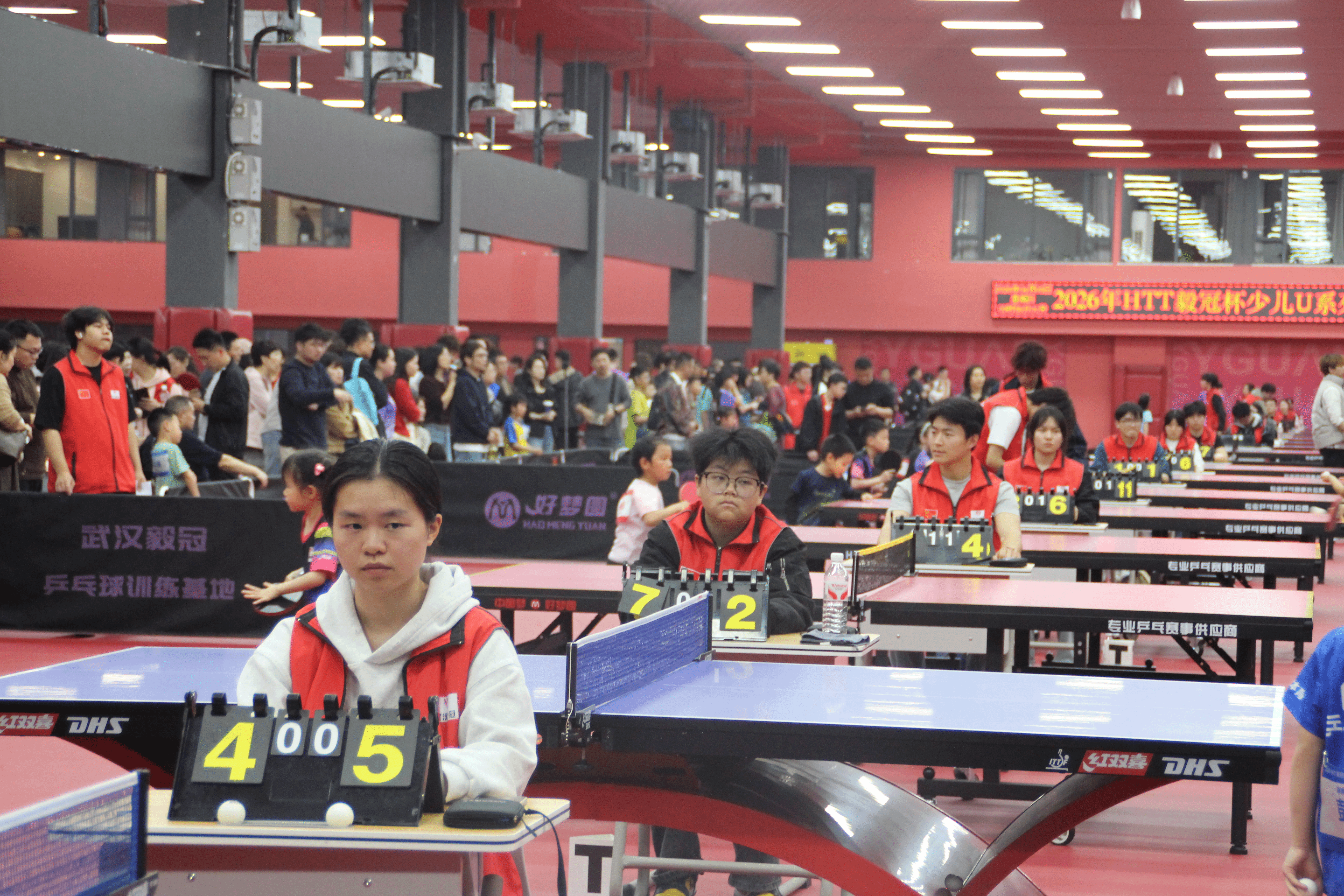 4月4日—6日,长江工程职业技术学院人文素质教育学院体育骨干教师带领近100名学生,赴武汉毅冠体育乒乓球训练基地,全程服务2026年“毅冠杯”少儿U系列乒乓球竞赛(武汉站)。本次赛事规模空前,共有1200余人次参赛,50张球台同时开赛,不仅技术水平高、竞赛编排复杂,竞争也尤为激烈。我校学生不负重托,圆满完成赛事执裁、组织管理等各项服务工作,得到毅冠体育负责人的高度肯定。
